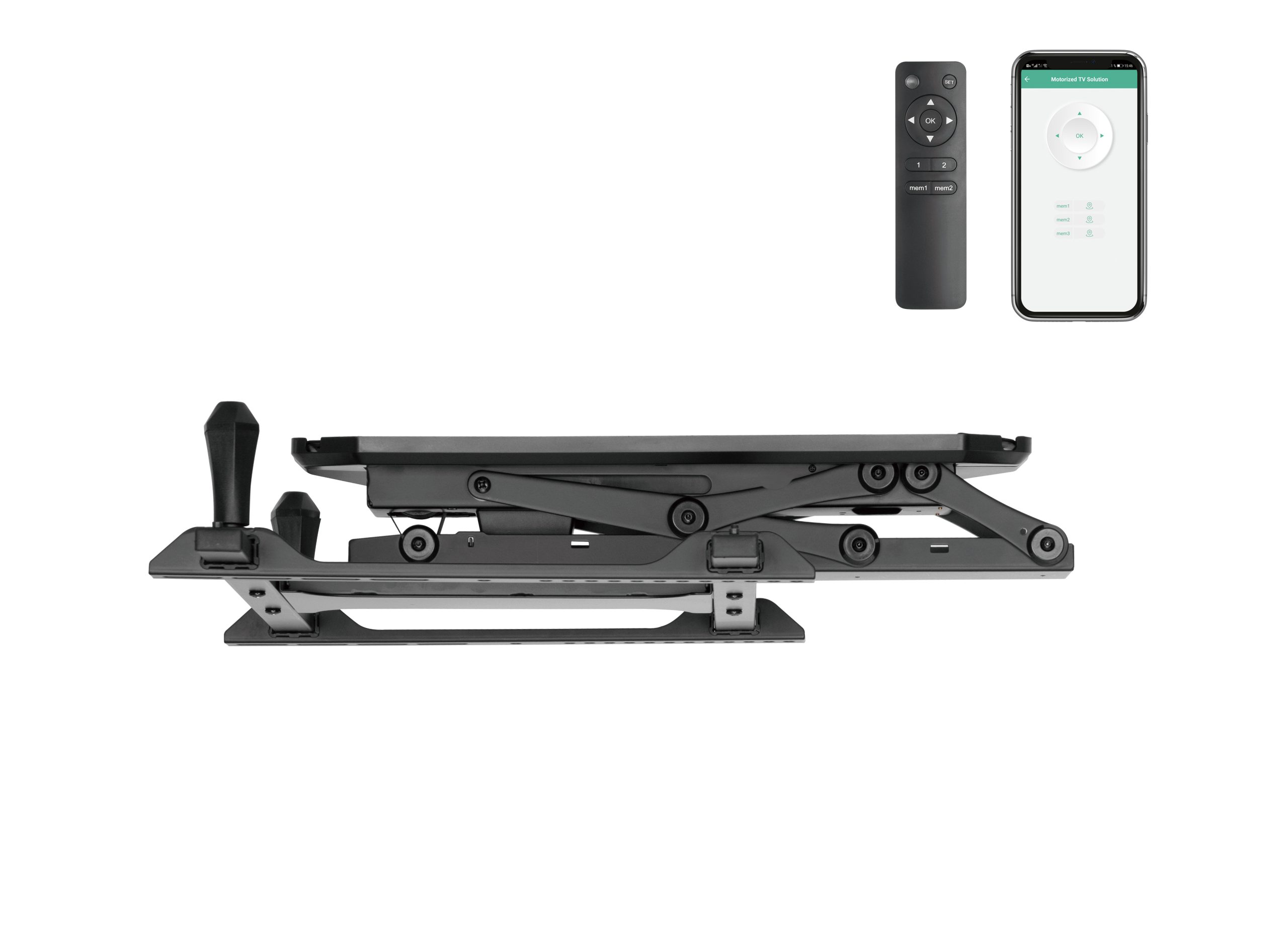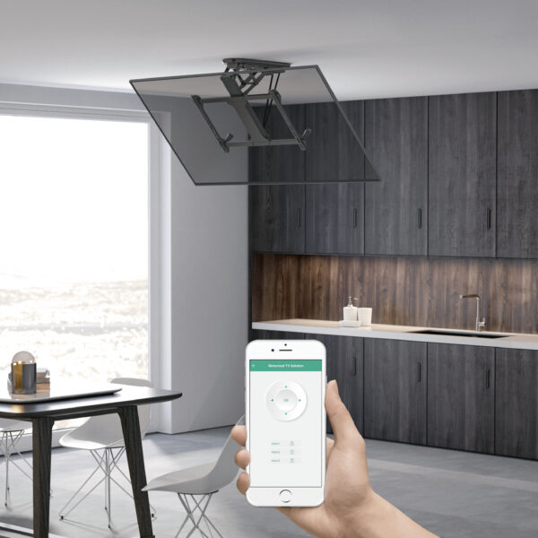 Description: Smart Flip Down Motorize TV Ceiling Mount operate by RF remote and Smart App. Model: GKD-626MS